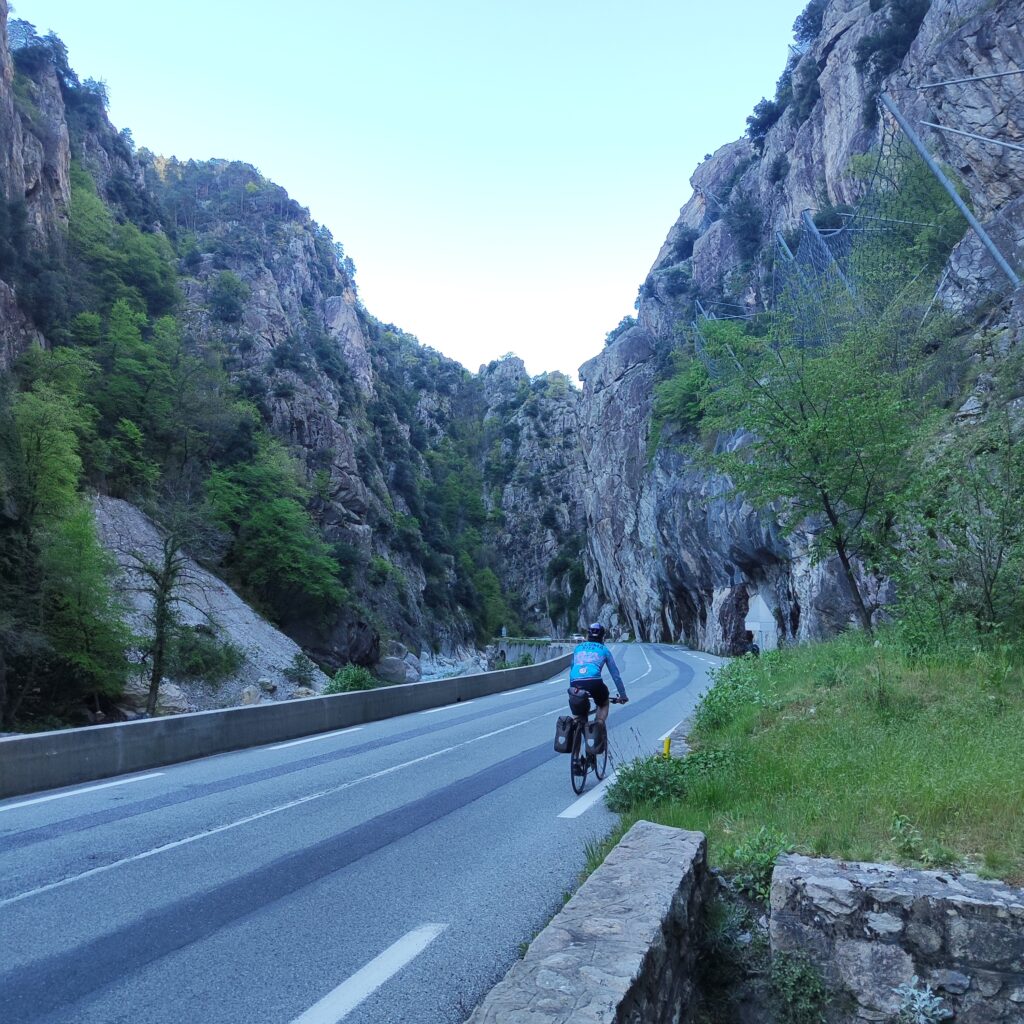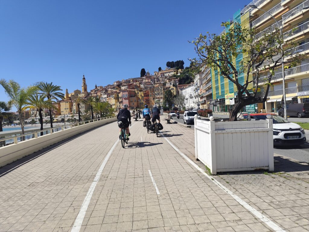 Unsere Unterkunft in St-Dalmas-de-Tende war ein altes Kloster mit währschafter Küche — schlicht, aber sehr stimmungsvoll. Am nächsten Tag folgte vielleicht die schönste Abfahrt der ganzen Reise bis nach Menton. Monaco mussten wir etwas mühsam mit dem Velo umfahren, doch schliesslich erreichten wir Nizza.