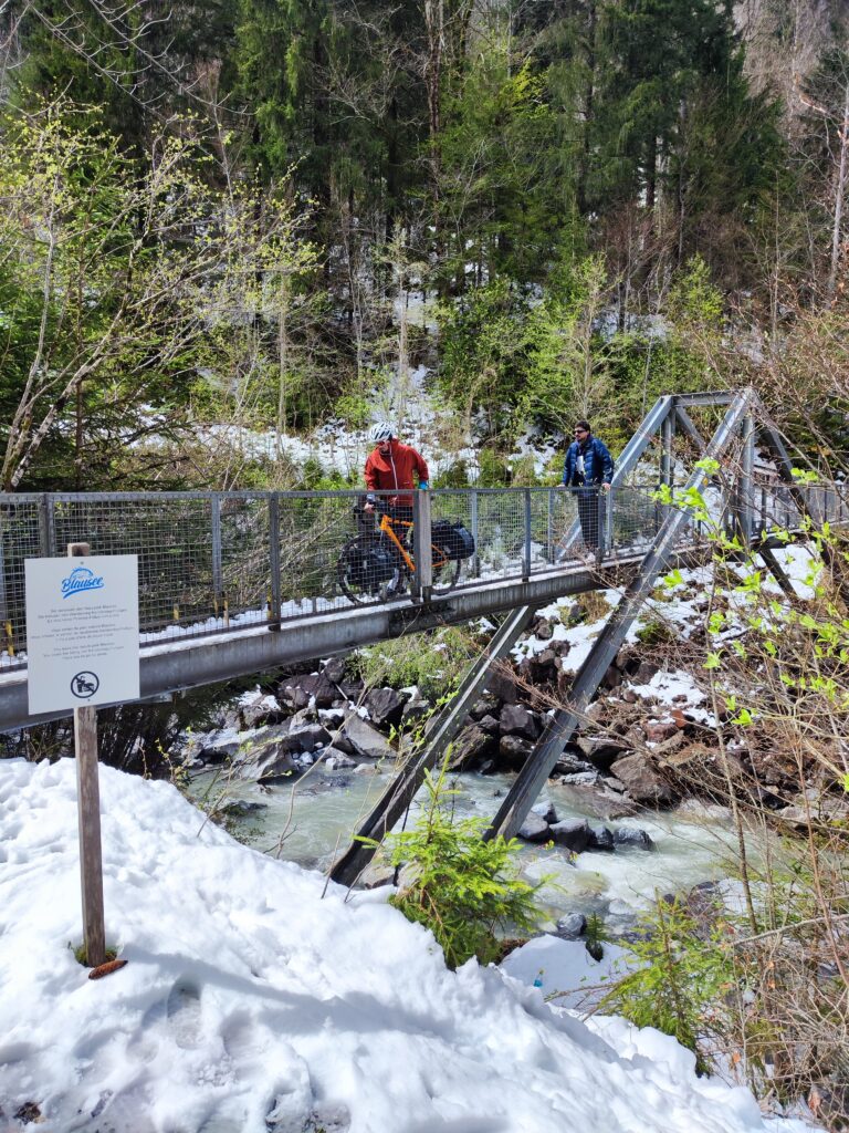 Am Osterwochenende starteten wir zu unserer BeLuMa-Veloreise mit Passivmitgliedervertretung Jonas. Geplant war für die erste Etappe eigentlich die Route Brig – Simplon – Domodossola. Doch wegen starkem Schneefall mussten wir umdisponieren und fuhren stattdessen von Bern nach Kandersteg. Abenteuerlich blieb es trotzdem. Unterwegs machten wir einen Abstecher zum Blausee, welcher wegen des Schneefalls unumgänglich war. Von Kandersteg ging es mit dem Zug nach Domodossola.